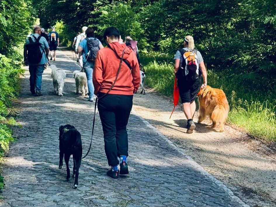 Diese Regeln sind wichtig, denn bei diesem Spaziergang geht es darum, dass Hunde kontrolliert auf Hunde treffen und sehen bzw. lernen, dass andere Hunde keine Bedrohung oder Konkurrenz sein müssen.